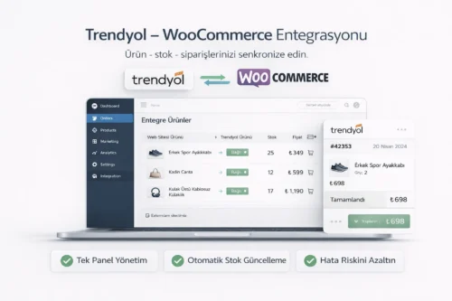 Trendyol, WooCommerce, Shopify vb. pazaryerleri API’leri ile gerçek zamanlı senkronize çalışır.
